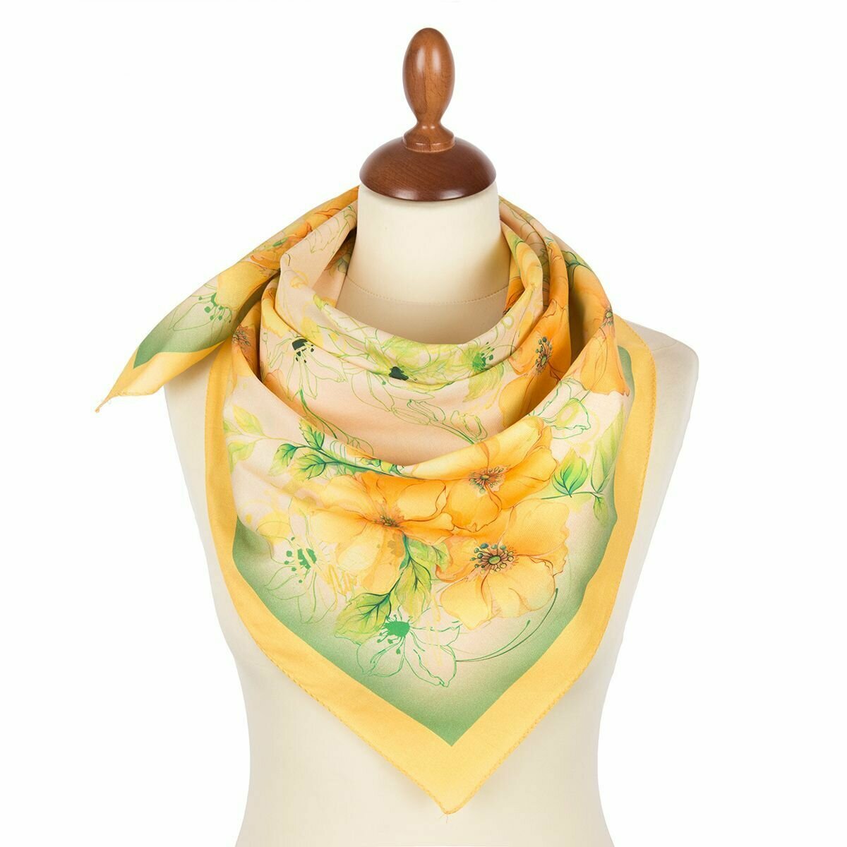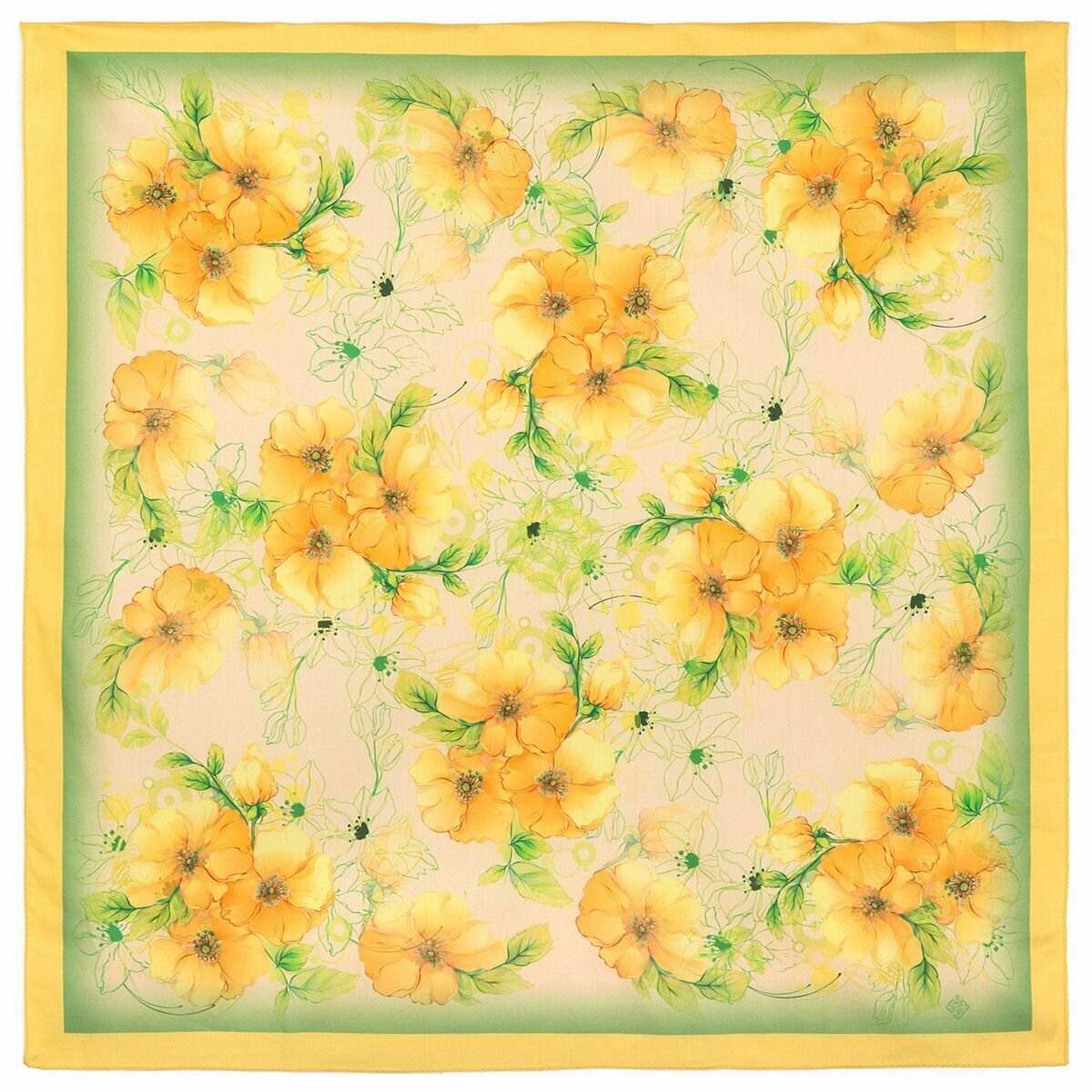 Купить Платок Павловопосадская платочная мануфактура для женщин,80х80 см, желтый/зеленый