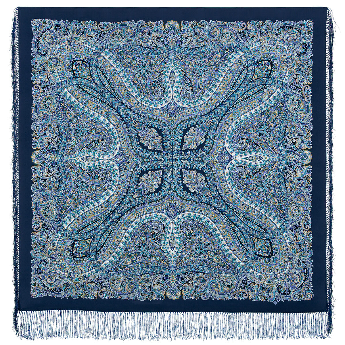 Платок Павловопосадская платочная мануфактура для женщин,130х130 см, синий/голубой