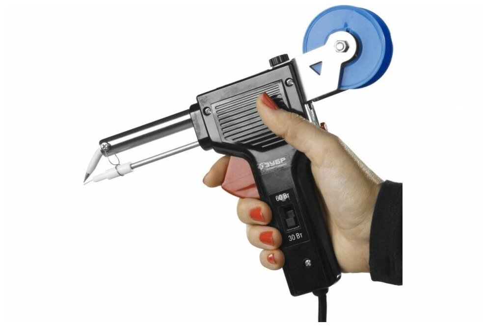 Паяльник ЗУБР ″Профессионал″ с подачей припоя, 2 мощности (30Вт/60Вт), диаметр проволоки припоя от 1 до 3мм