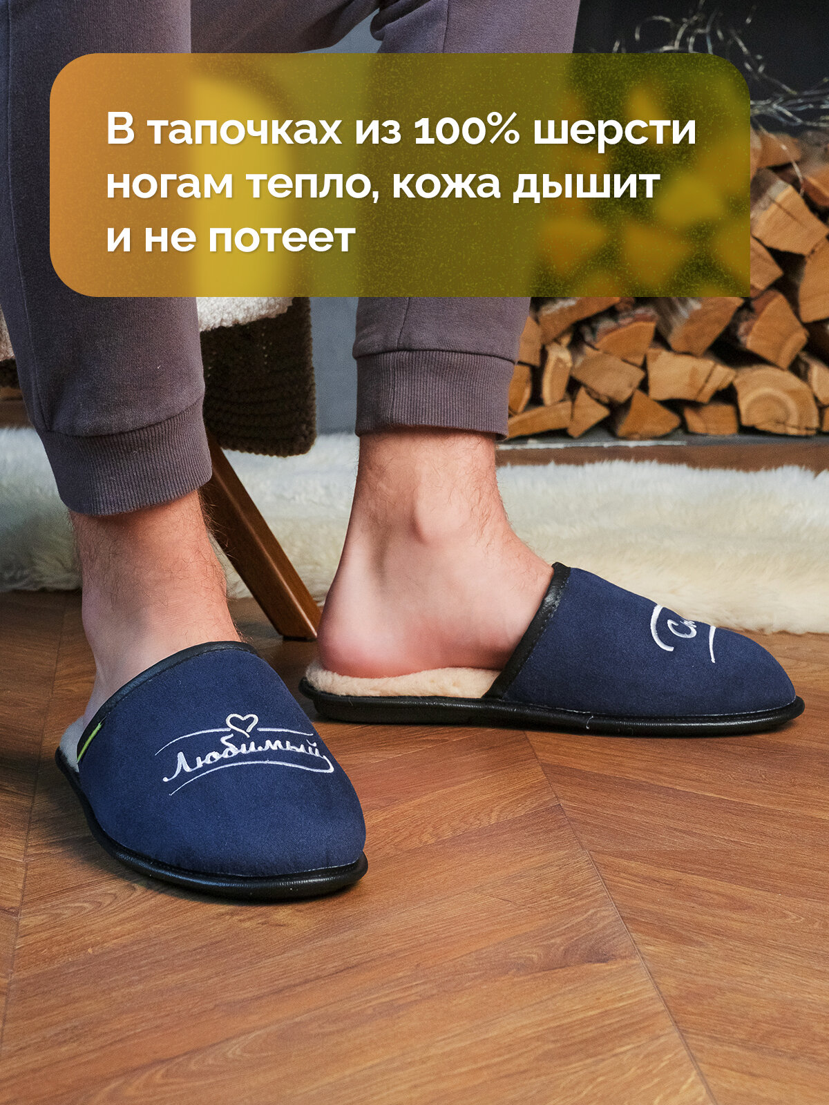 Тапочки HOLTY Подарок любимым, размер 42, синий