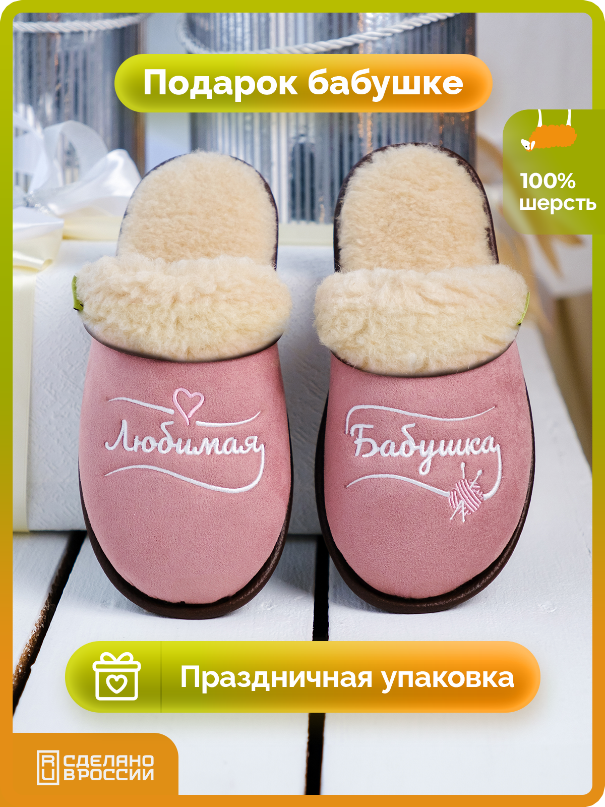 Тапочки HOLTY Подарок любимым, размер 42, бежевый