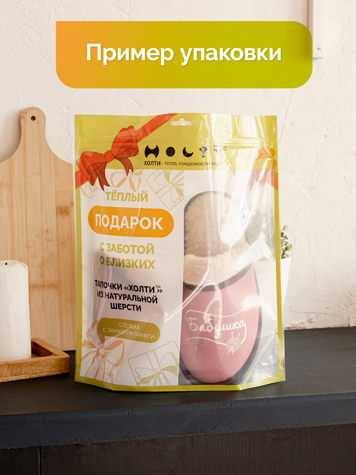 Тапочки HOLTY Подарок любимым, размер 42, светло-бежевый
