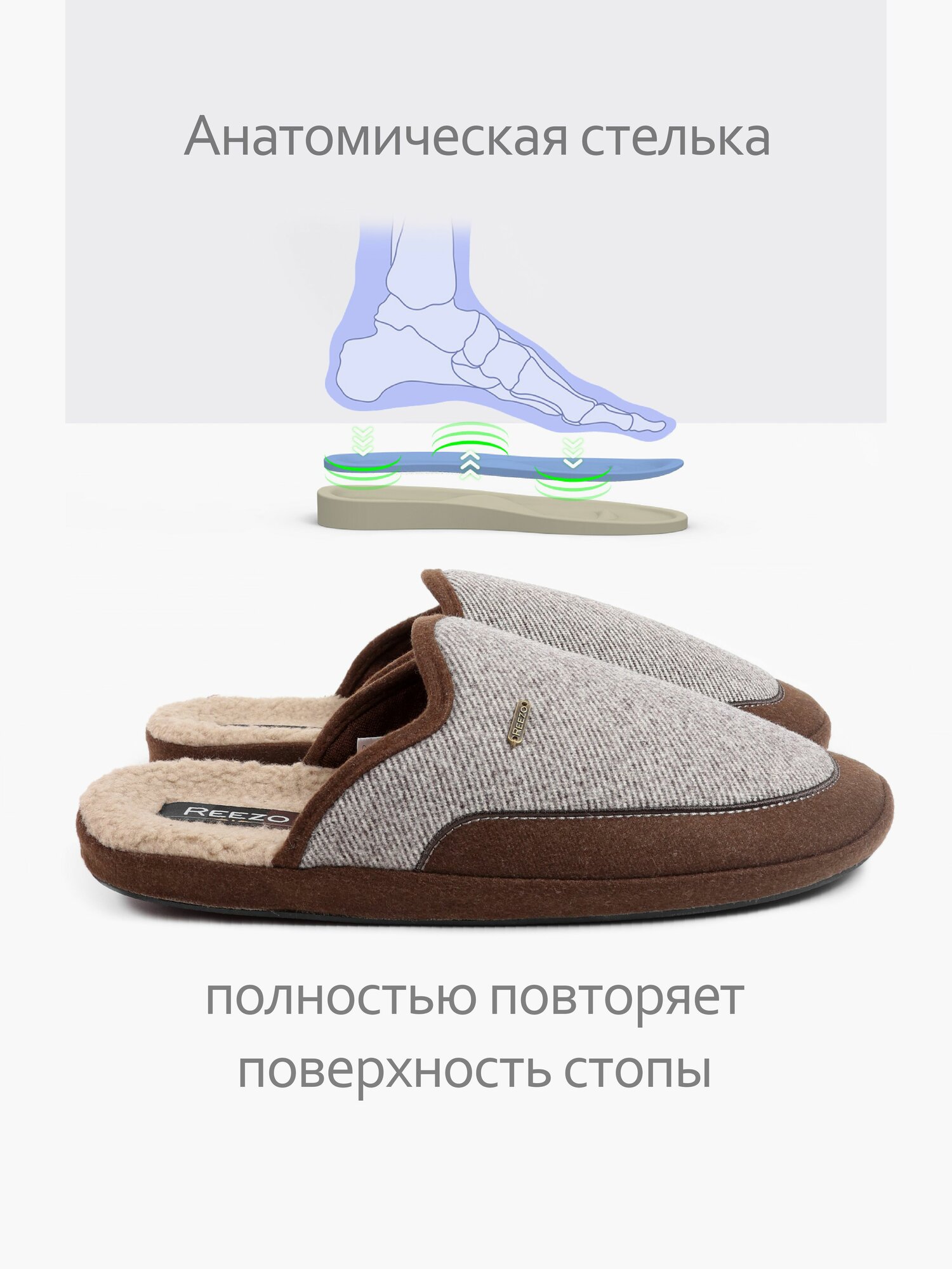 Тапочки Reezo, размер 45-46, серо-коричневый