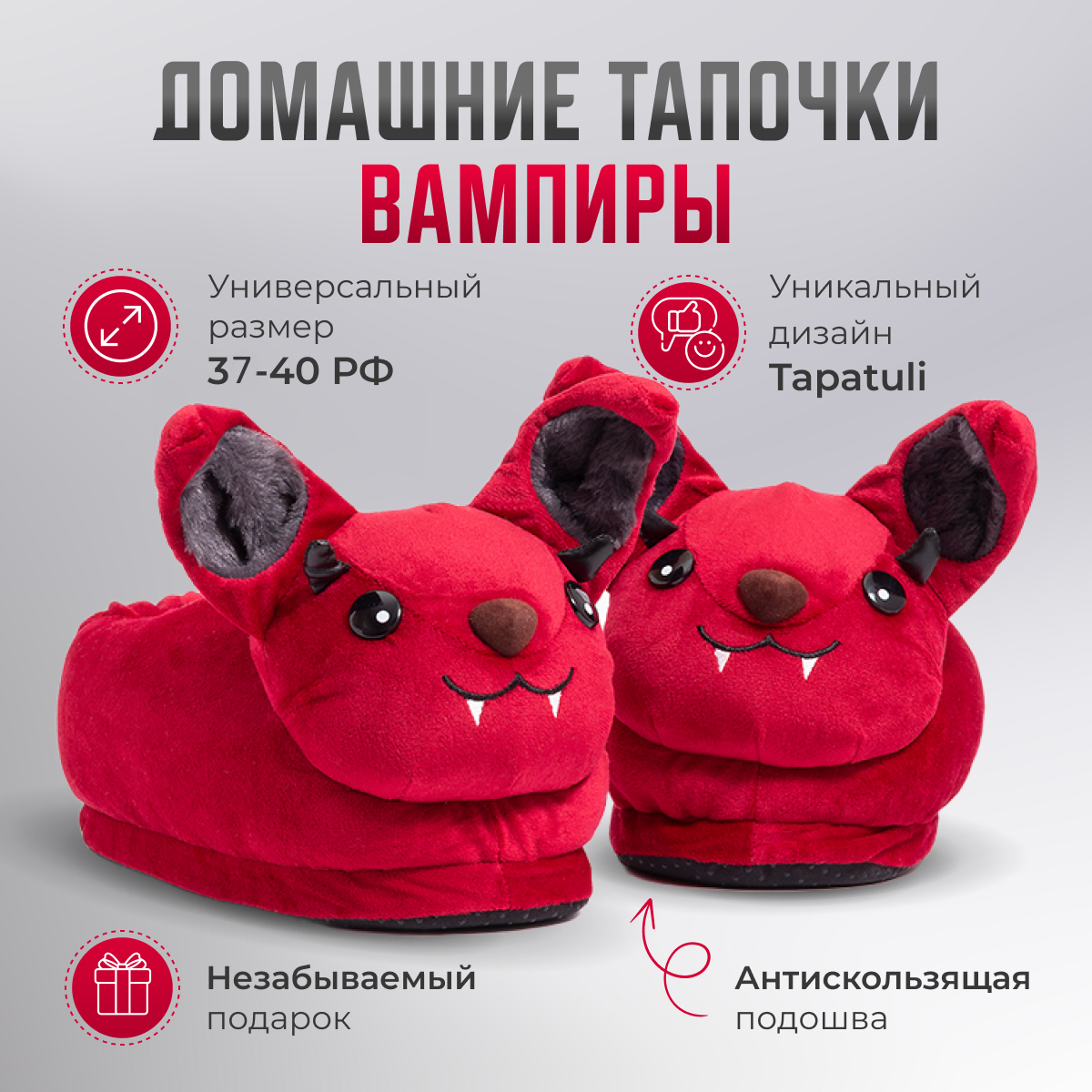 Тапочки Tapatuli Домашние плюшевые тапочки "Вампиры", размер 37-40, красный интересное: