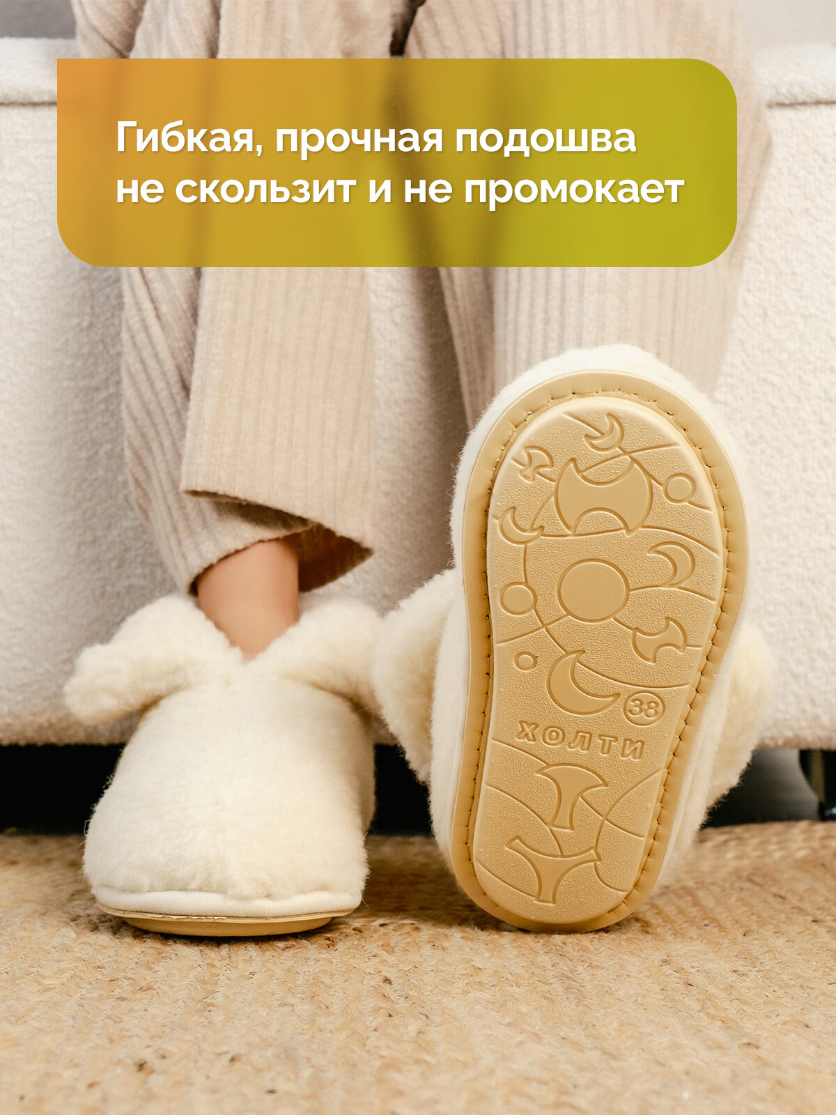 Тапочки HOLTY Теплушки, размер 38, white