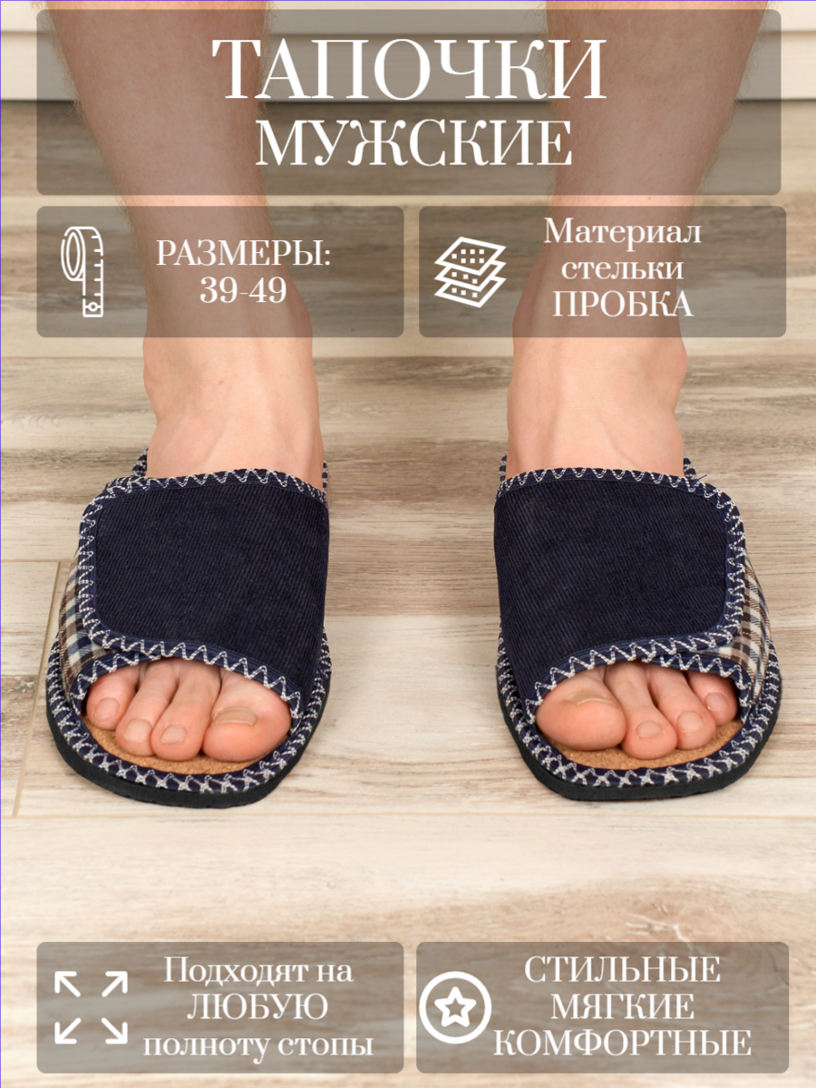 Тапочки LepiloV, размер 49, синий, черный, коричневый