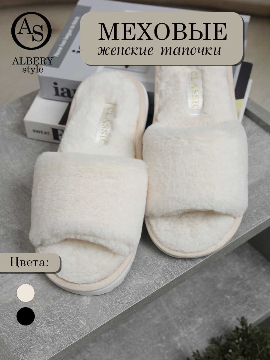 Тапочки ALBERY Тапочки меховые открытые ALBERY, размер 40-41, бежевый интересное: