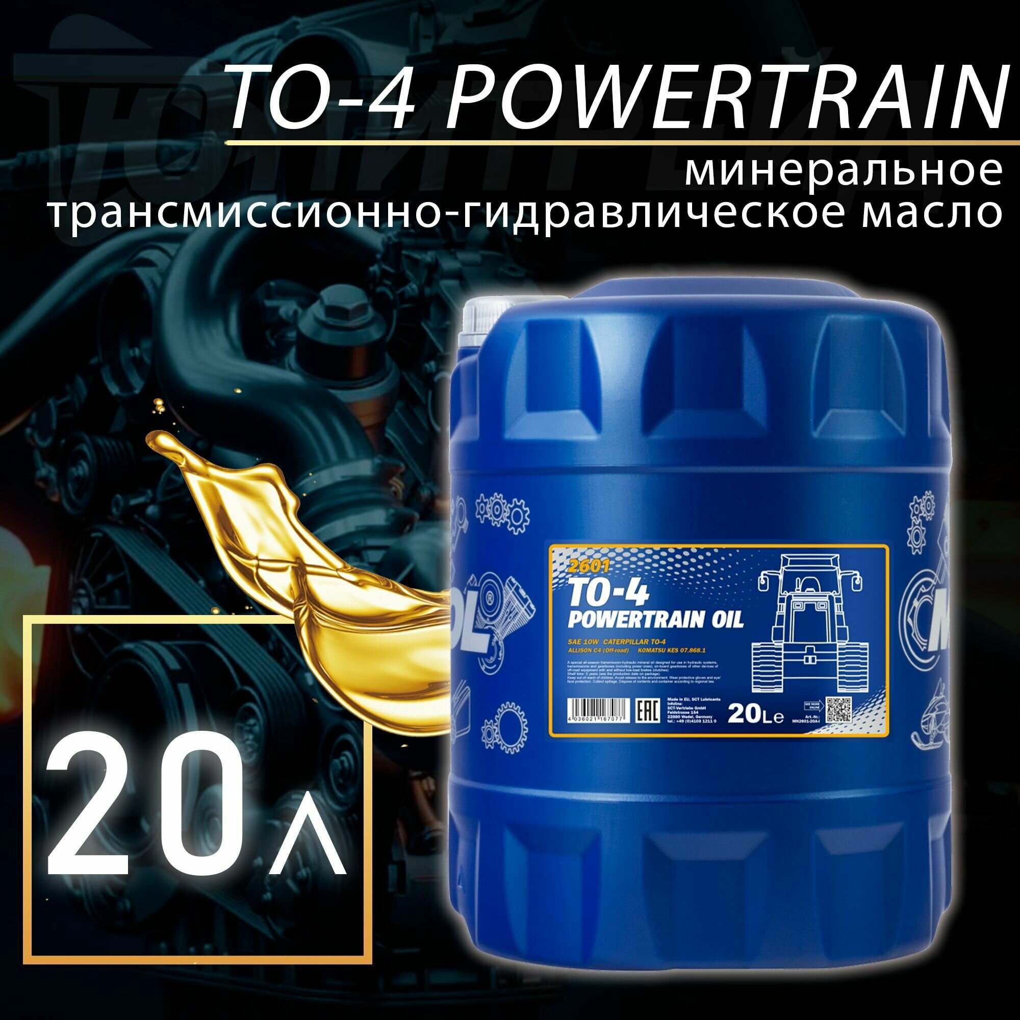 MANNOL MN2601-20 2601-20 MANNOL TO-4 POWERTRAIN OIL 10W 20 . Трансмисионное гидравическое масо 10W