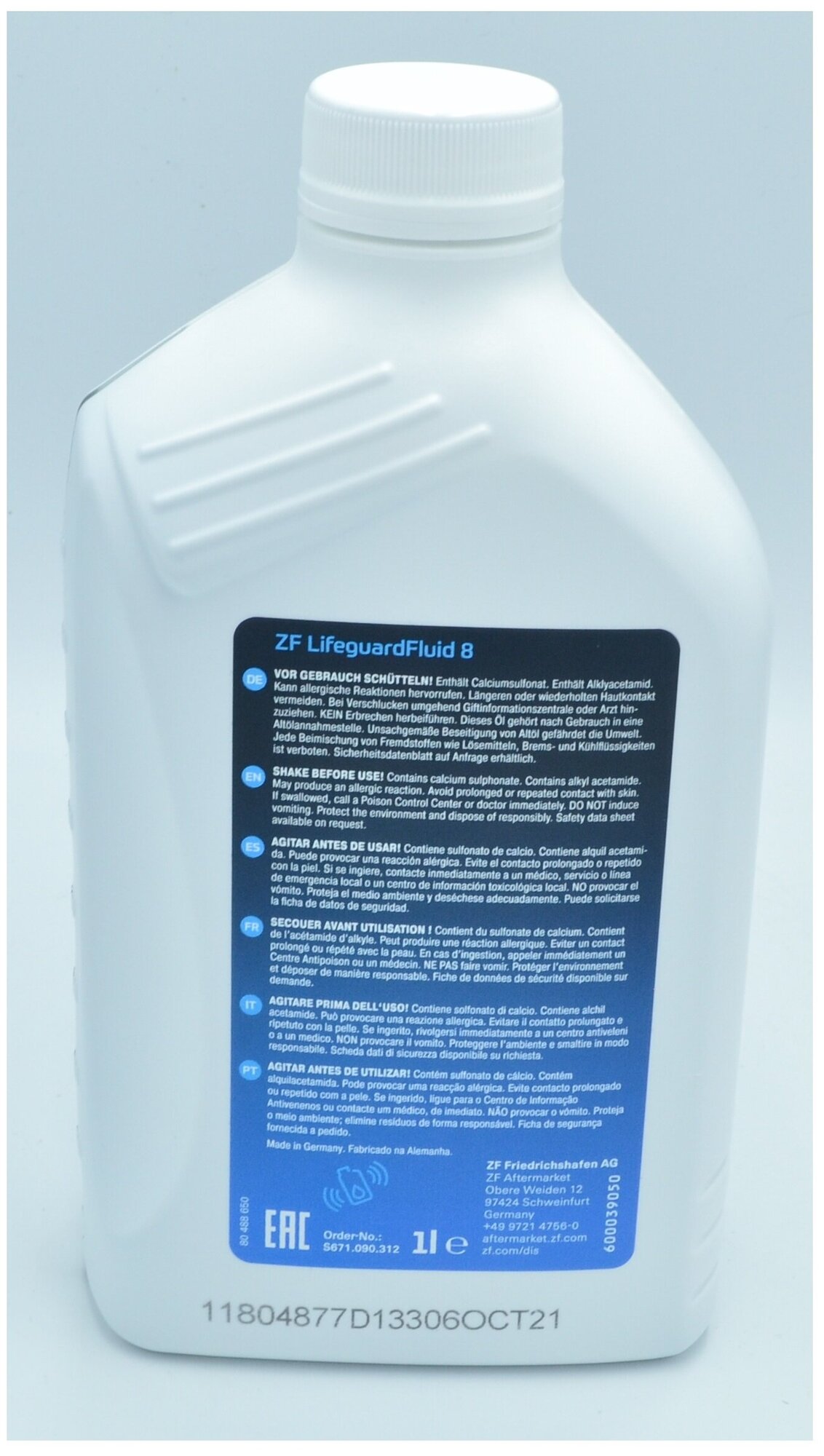 Ниже Вы можете прочитать отзывы на Масло трансмиссионное ZF ATF LIFEGUARD FLUID 8HP зеленый 1 л S671.090.312, ознакомится с подробными характеристиками, посмотреть интересные обзоры и фотографии на Масло трансмиссионное ZF ATF LIFEGUARD FLUID 8HP зеленый 1 л S671.090.312.
