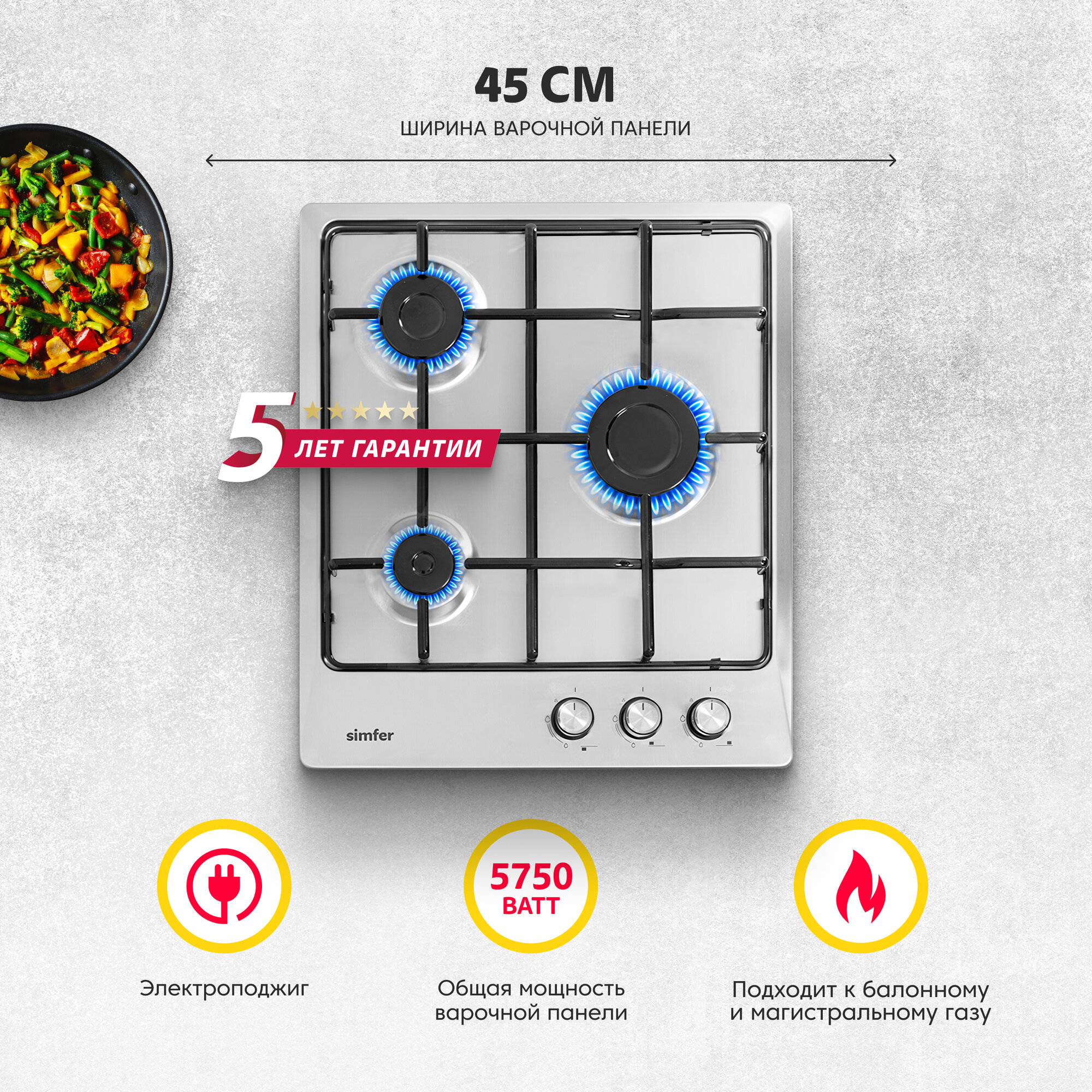 Газовая варочная панель Simfer H45V30M420 (с автоподжигом, нержавеющая сталь) интересное:
