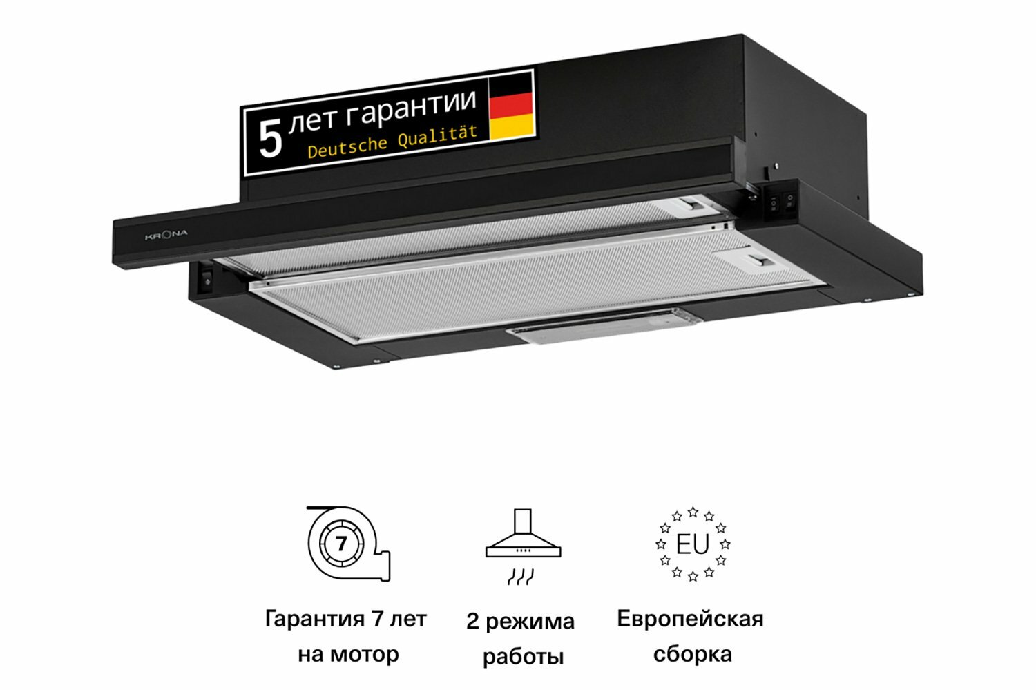 Встраиваемая вытяжка Krona KAMILLA 600 GLASS BLACK, черный ( 60 см )