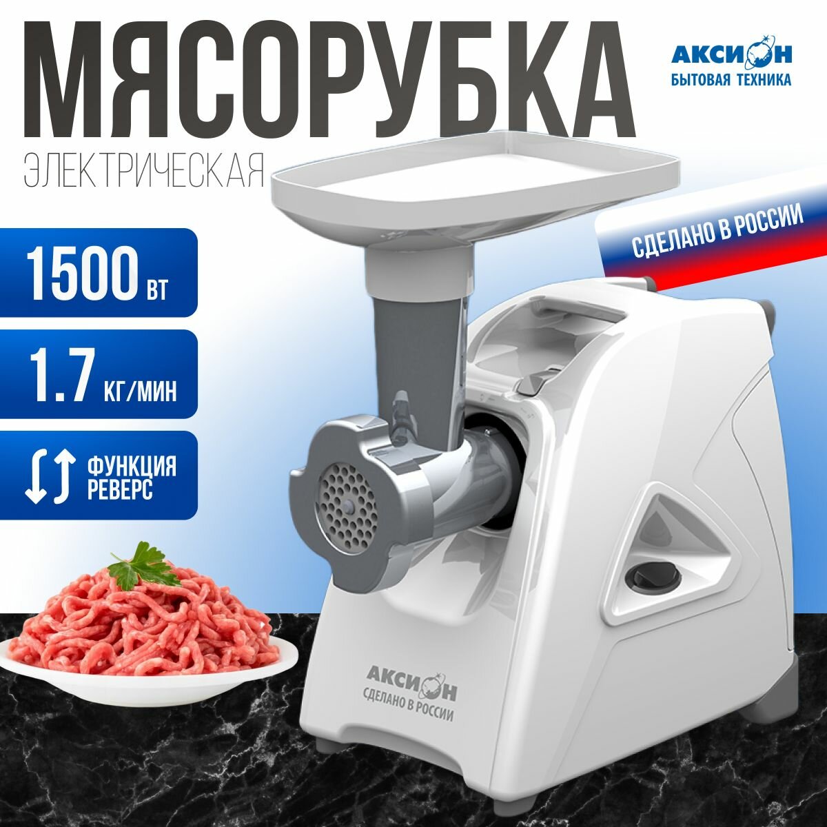 Электрическая мясорубка Аксион М 35.00, белый мрамор