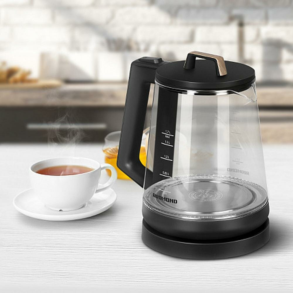 Чайник Redmond RK-G190 Черный с деревом