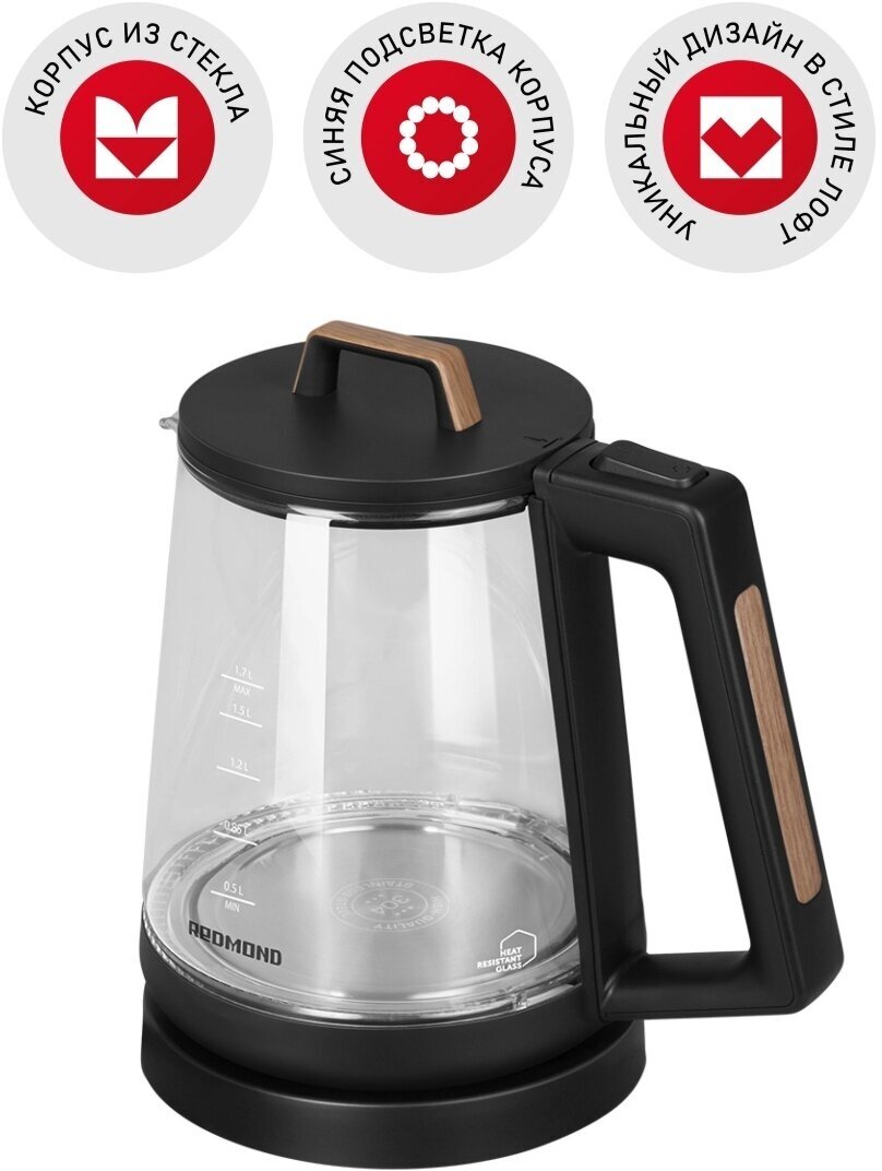 Чайник Redmond RK-G190 Черный с деревом