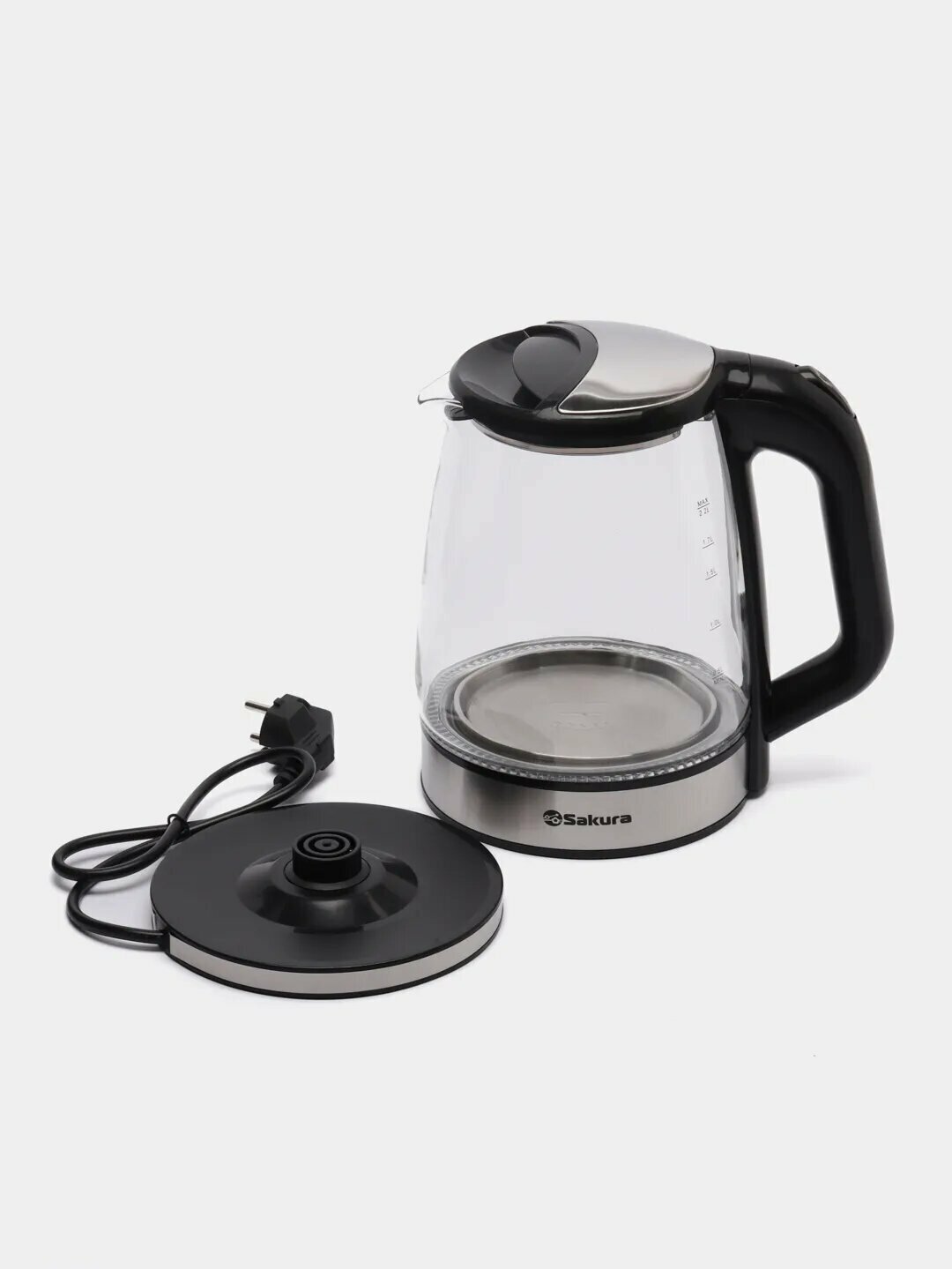 Чайник электрический Sakura SA-2722BK, стекло, 2.2 л, 1800 Вт, подсветка, серебристо-чёрный