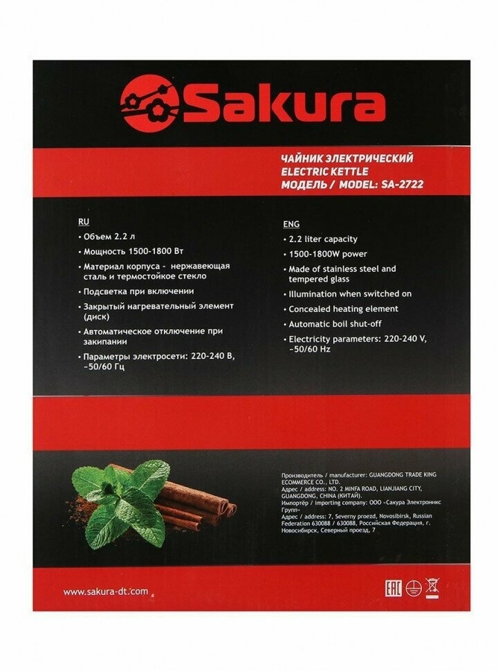 СохранитьЧайник электрический Sakura SA-2722R интересное: