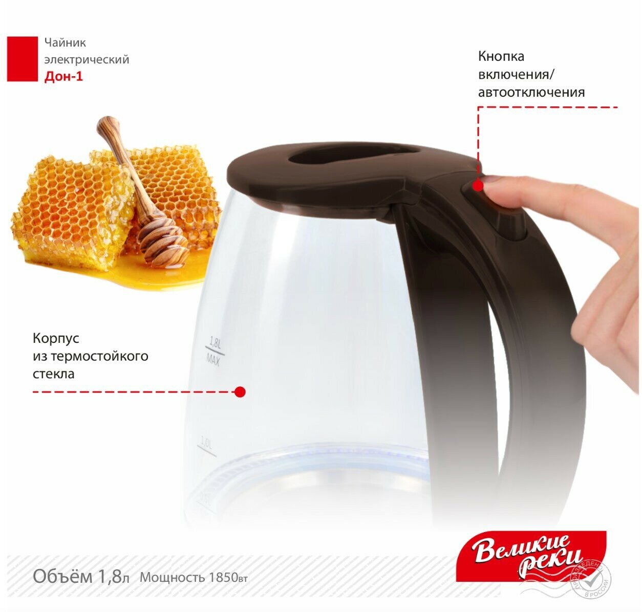 Чайник электрический Великие Реки Дон-1 1,8л, стекло, коричневый, 1850Вт (8)