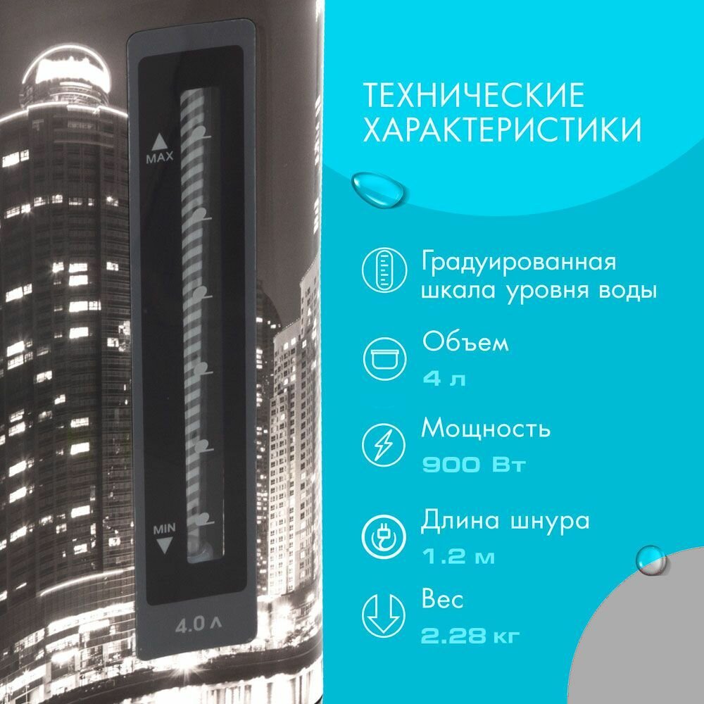 | Минусы: | Принт города совсем не того цвета ,что на фото в интернете . Он скорее серый ,чем черный . Неонки на кипячение и поддержание температуры одинакового цвета . Темная шкала воды ,видно плохо . |
