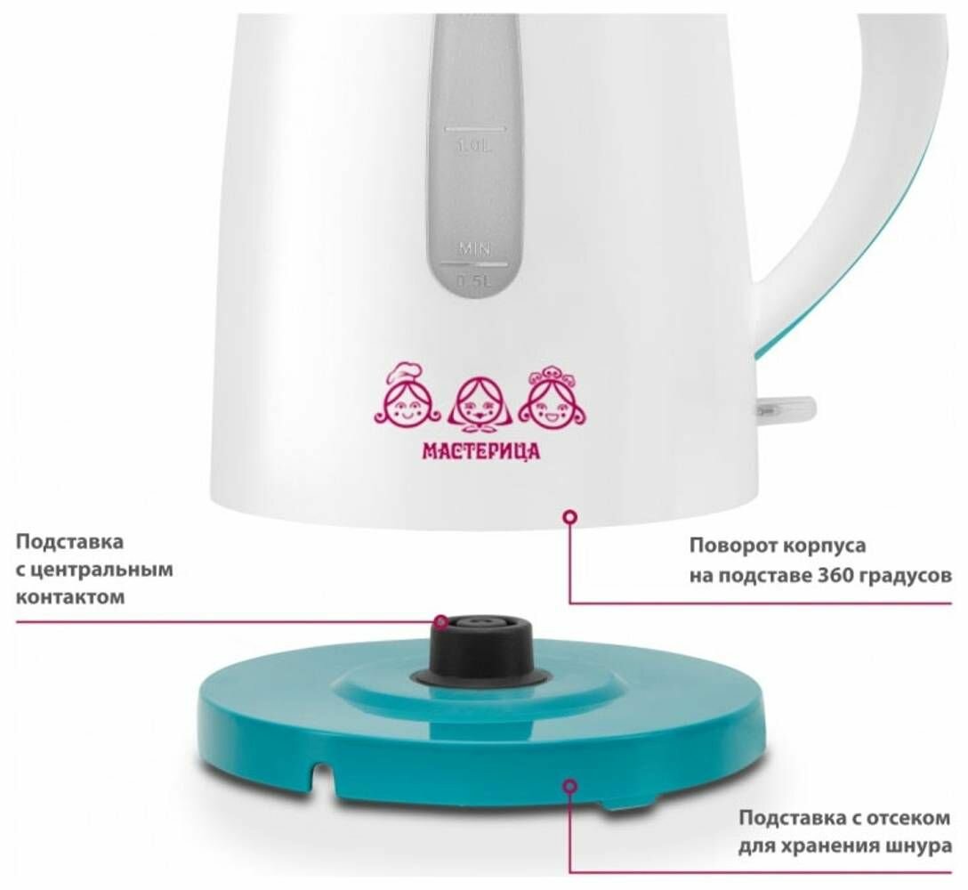Электрические чайники мастерица ЕК-1701M белый/бирюзовый