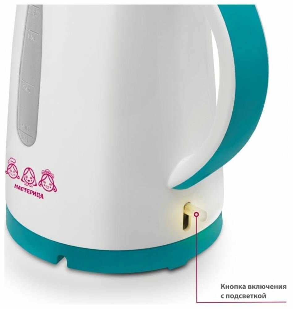 Чайник электрический Мастерица ЕК-1701M белый/бирюзовый, 1,7 л, пластик, 1850 Вт