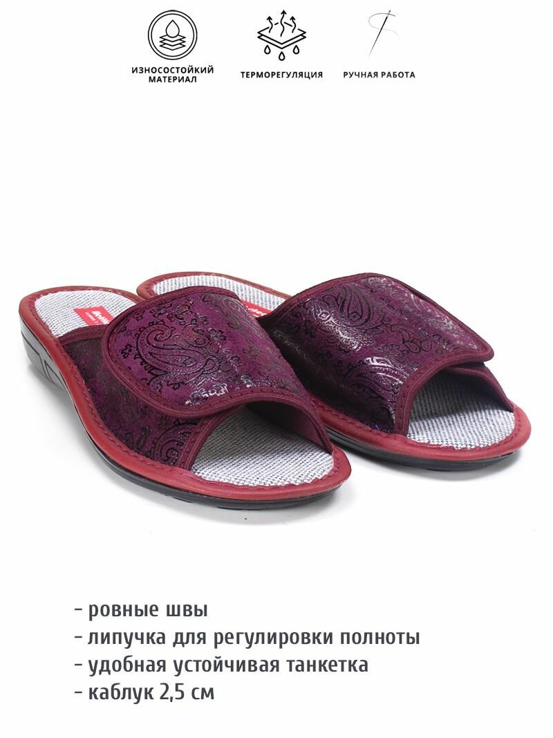 Тапочки melitta shoes, размер 38, =24см, бордовый