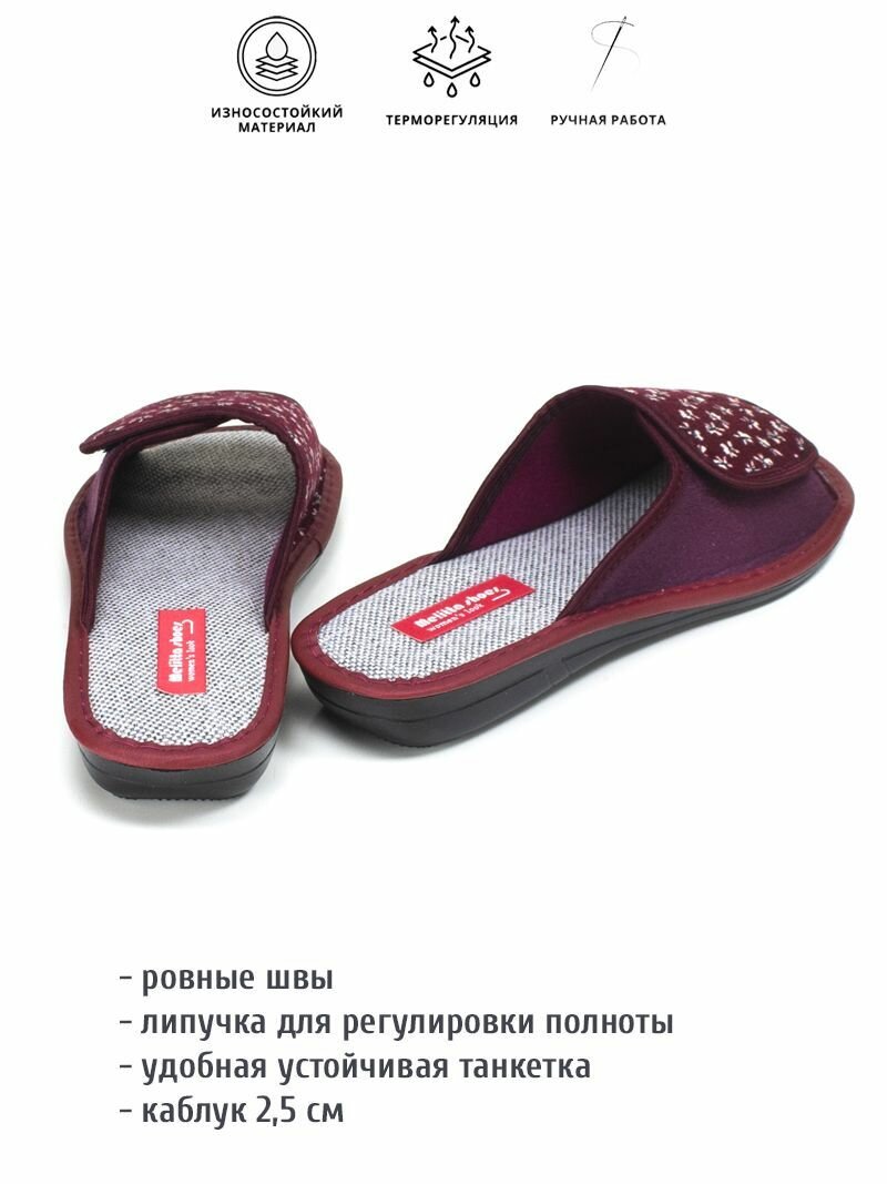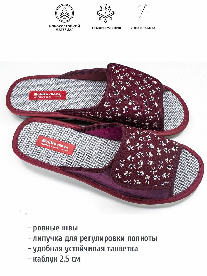 Тапочки melitta shoes, размер 36, =23см, бордовый