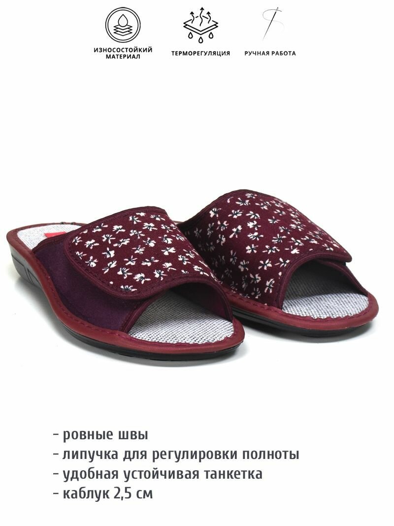 Тапочки melitta shoes, размер 38, =24см, бордовый