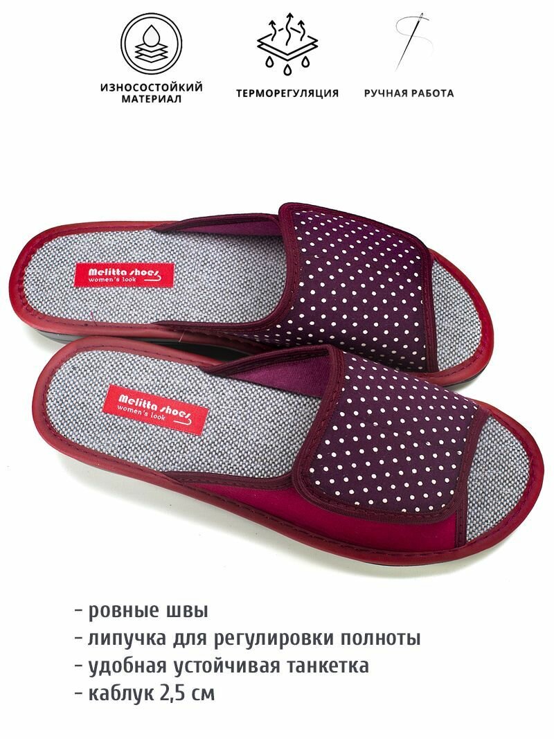 Тапочки melitta shoes, размер 38, =24см, бордовый