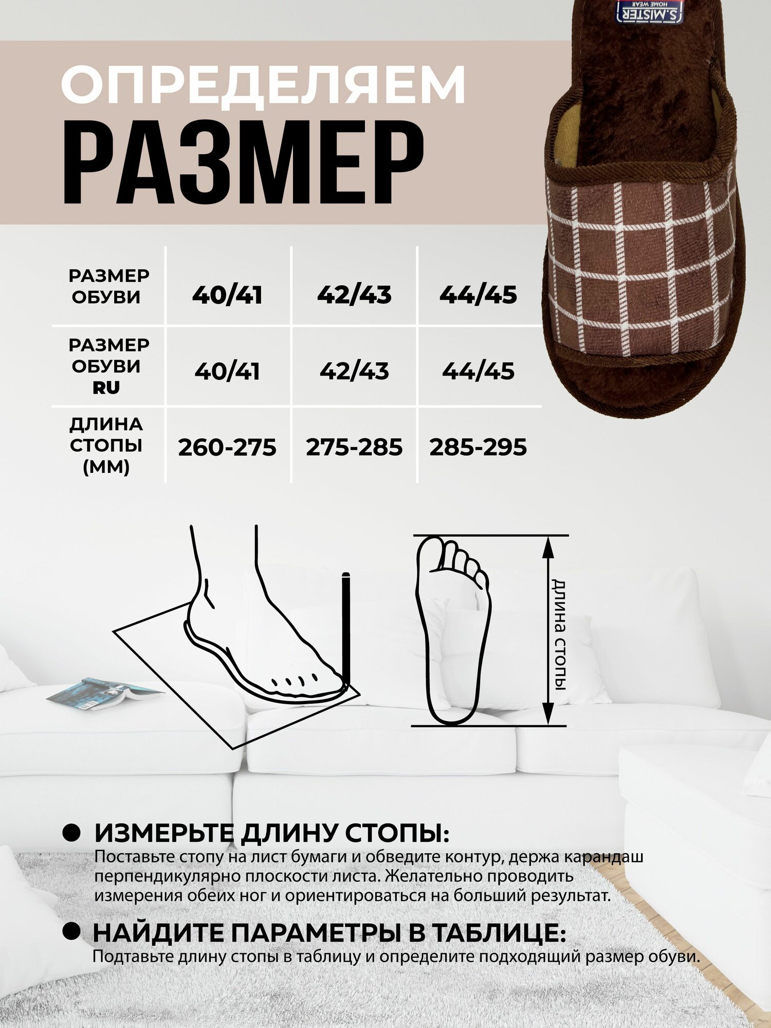 Тапочки Smile of Mister Кэжуал, размер 42/43, коричневый интересное: