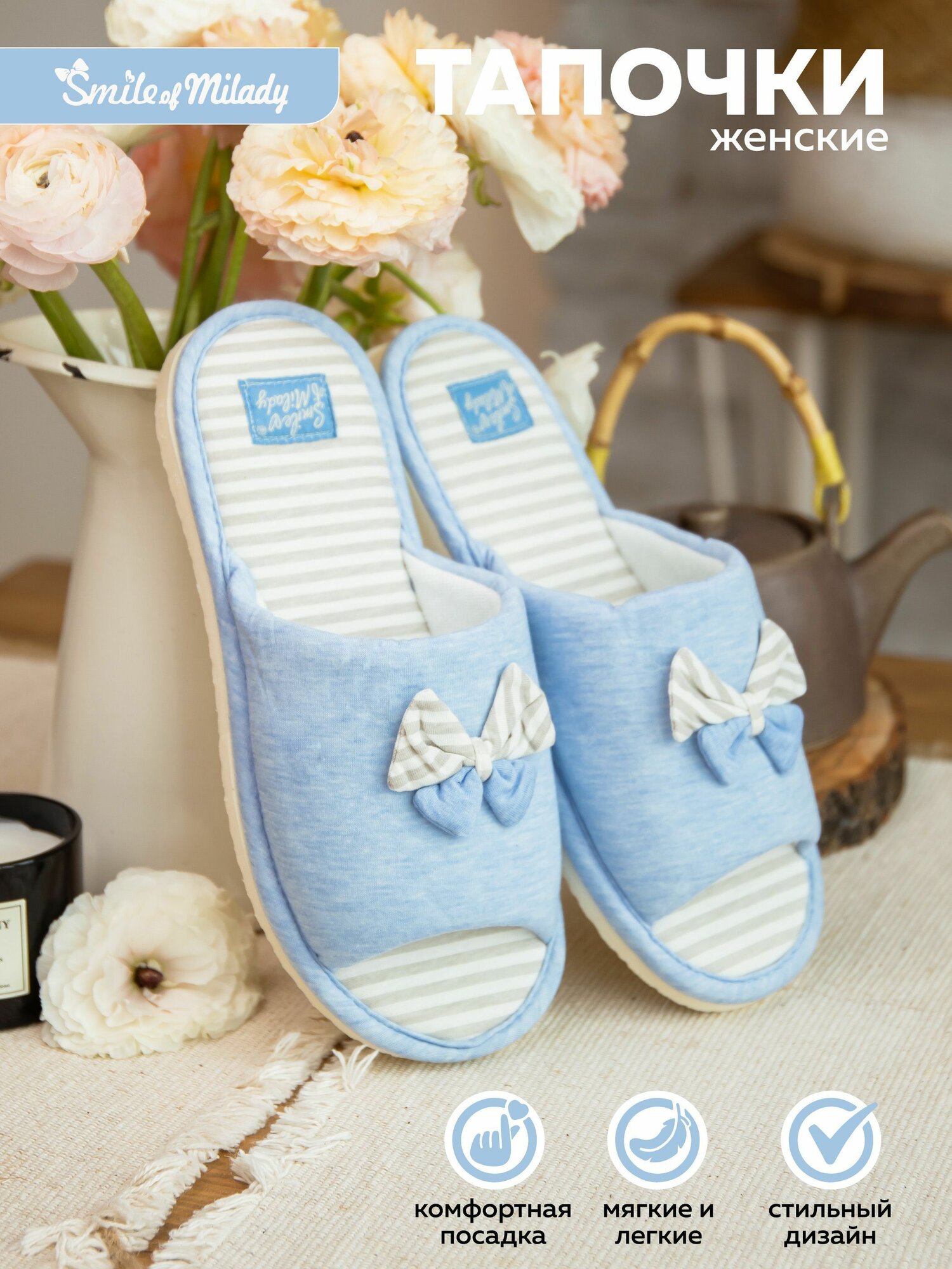 Купить Тапочки Smile of Milady Кэжуал, размер 39, голубой