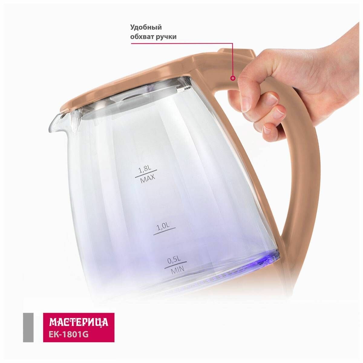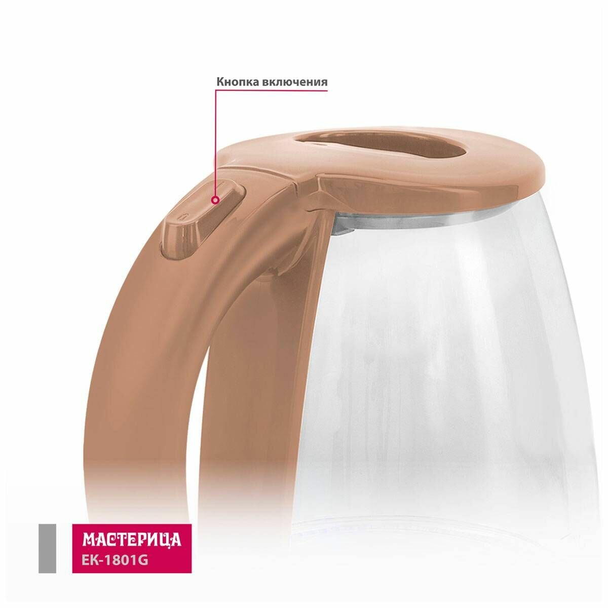 Купить Чайник электрический Мастерица ЕК-1801G, капучино, 1,8л, стекло, 1850 Вт