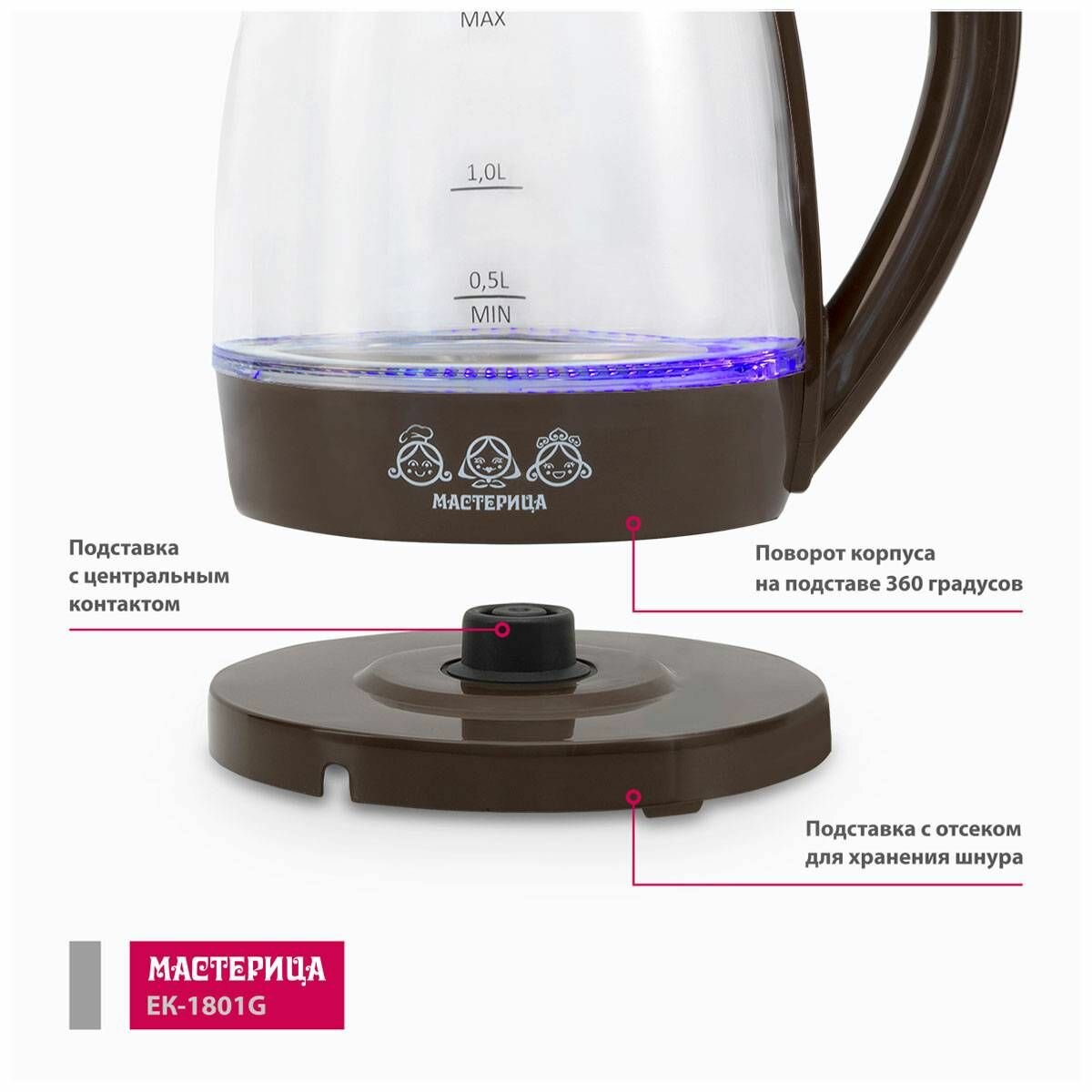 СохранитьЧайник электрический Мастерица ЕК-1801G, шоколад, 1,8л, стекло, 1850 Вт интересное: