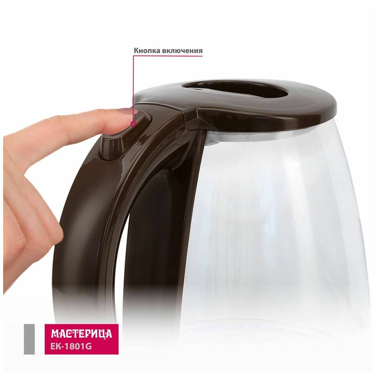 Мастерица Чайник электрический ЕК-1801G, шоколад, 1,8л, стекло, 1850 Вт 00-00016329