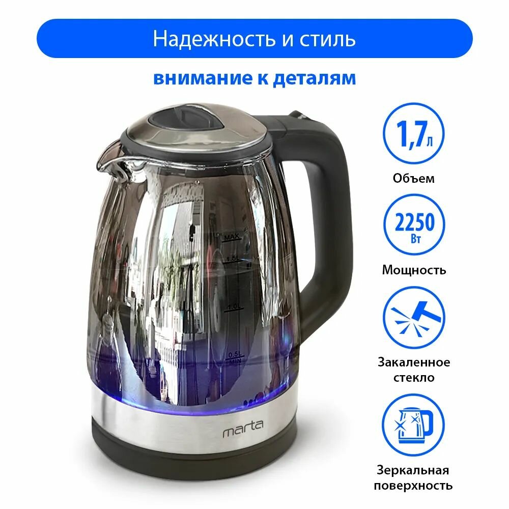 Чайник электрический Marta MT-1079 черный жемчуг
