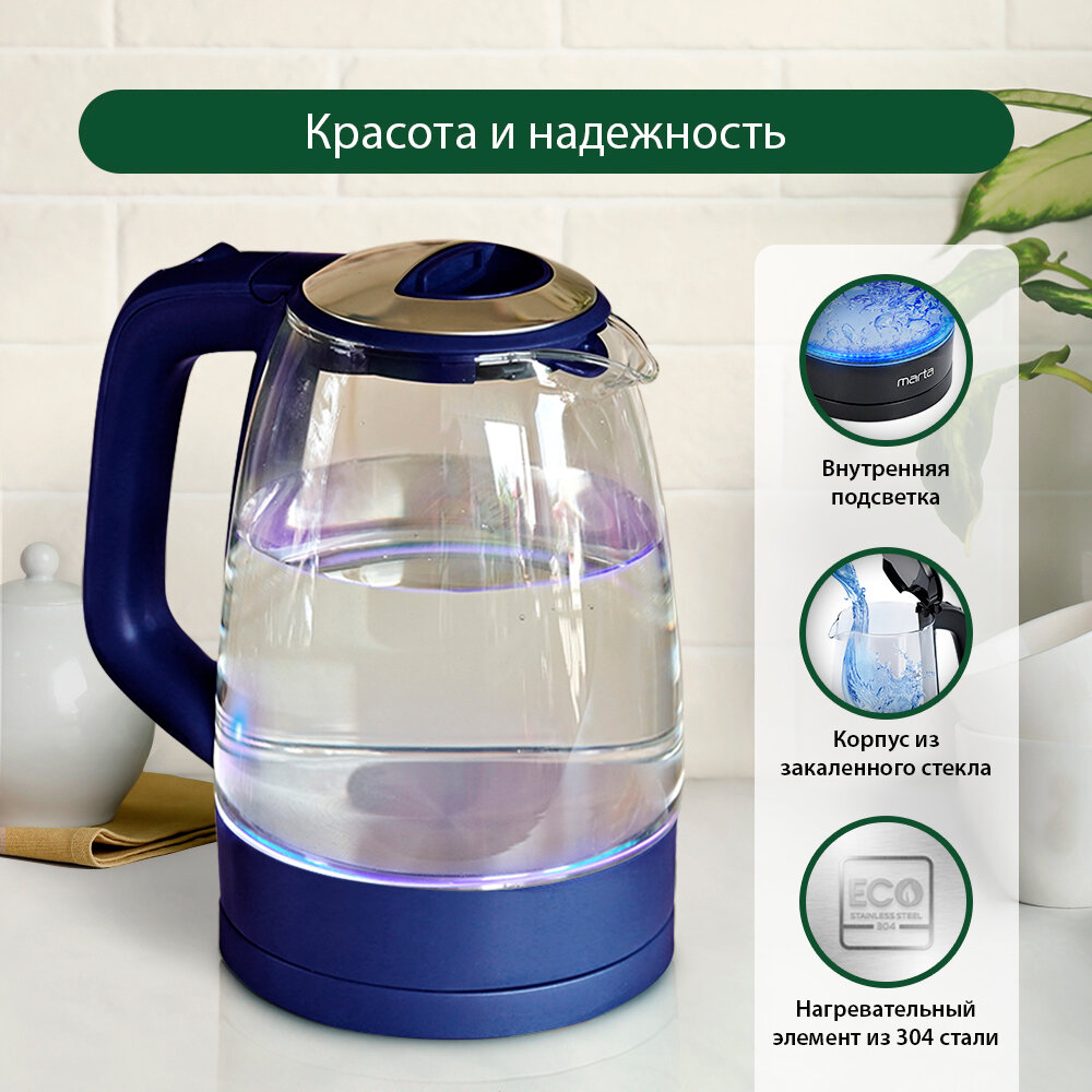 Чайник стеклянный MT-1097 синий сапфир интересное: