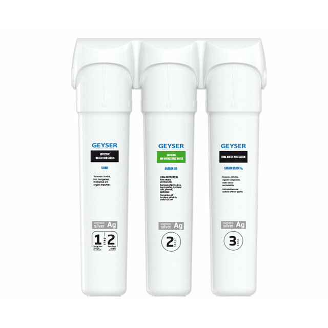 | Плюсы: | Приятный внешний вид, поставили просто на пол под мойку, (мойка установлена на тумбу), фильтрует отлично, вода не пахнет, на вкус приятная, пьем воду прямо из под фильтра. На официальном сайте «Гейзер» в характеристике указано, что удаляет вирусы и бактерии. Не многие фильтры могут этим похвастаться. Подключается очень легко, если есть мужчины в доме, так сами легко установят. Отдельный кран есть для фильтрованной воды, правда нам он не понадобился, так как у нас кран с двумя изливами. Без крана я не нашла фильтра с нужными мне параметрами. |