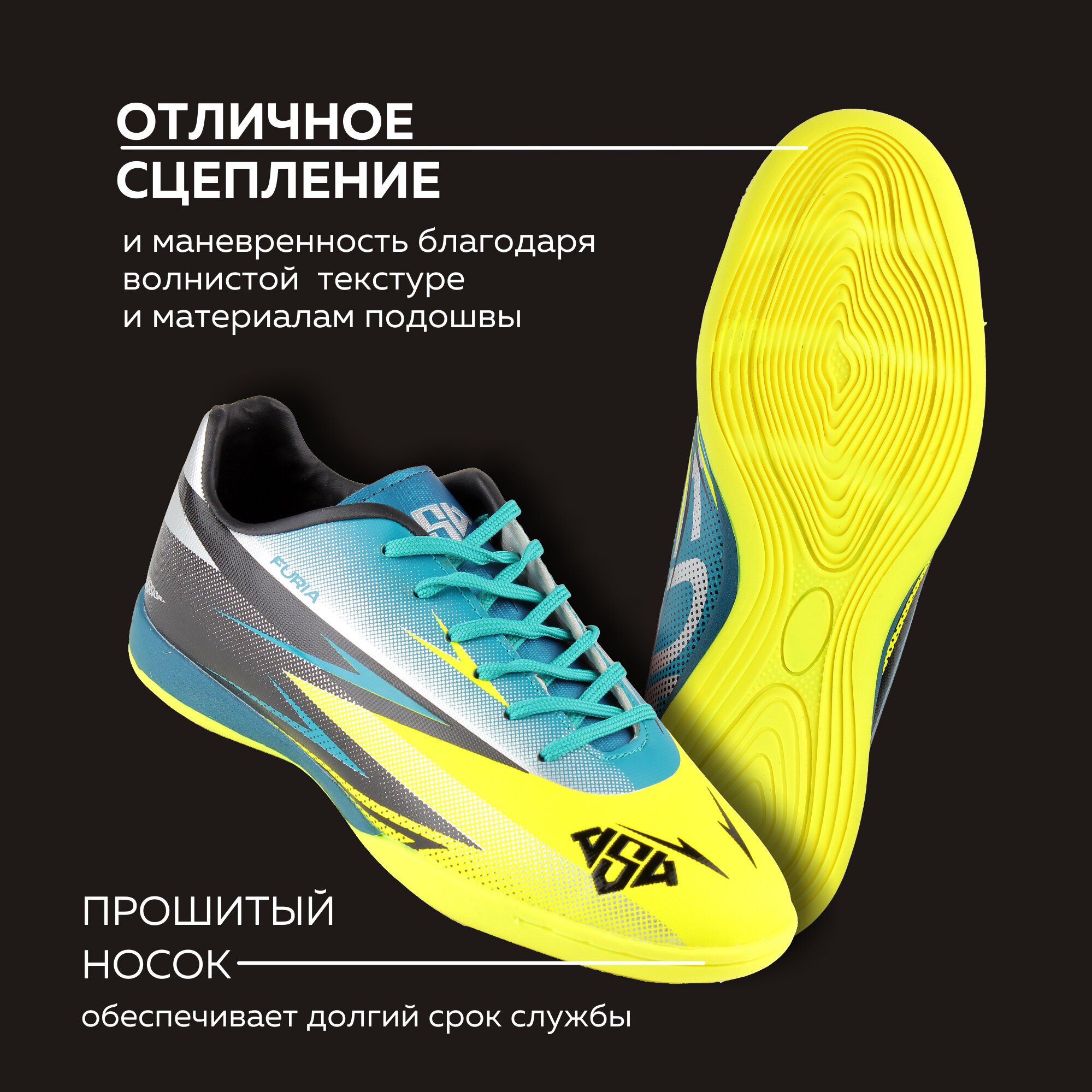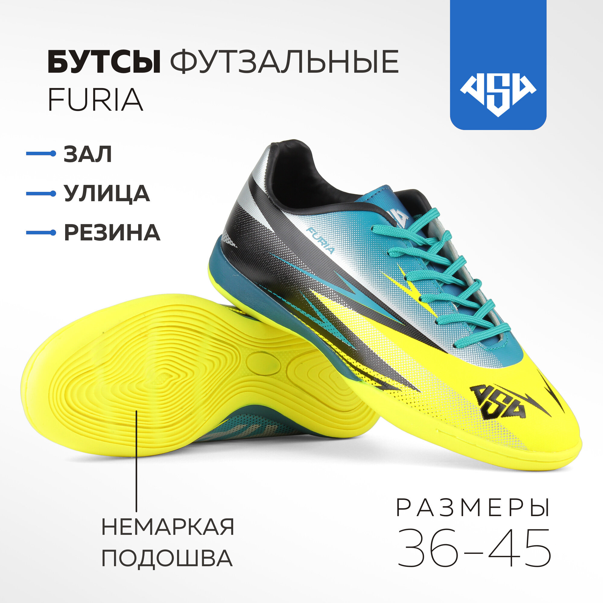 Футзалки AS4, размер 40, желтый, зеленый, черный интересное: