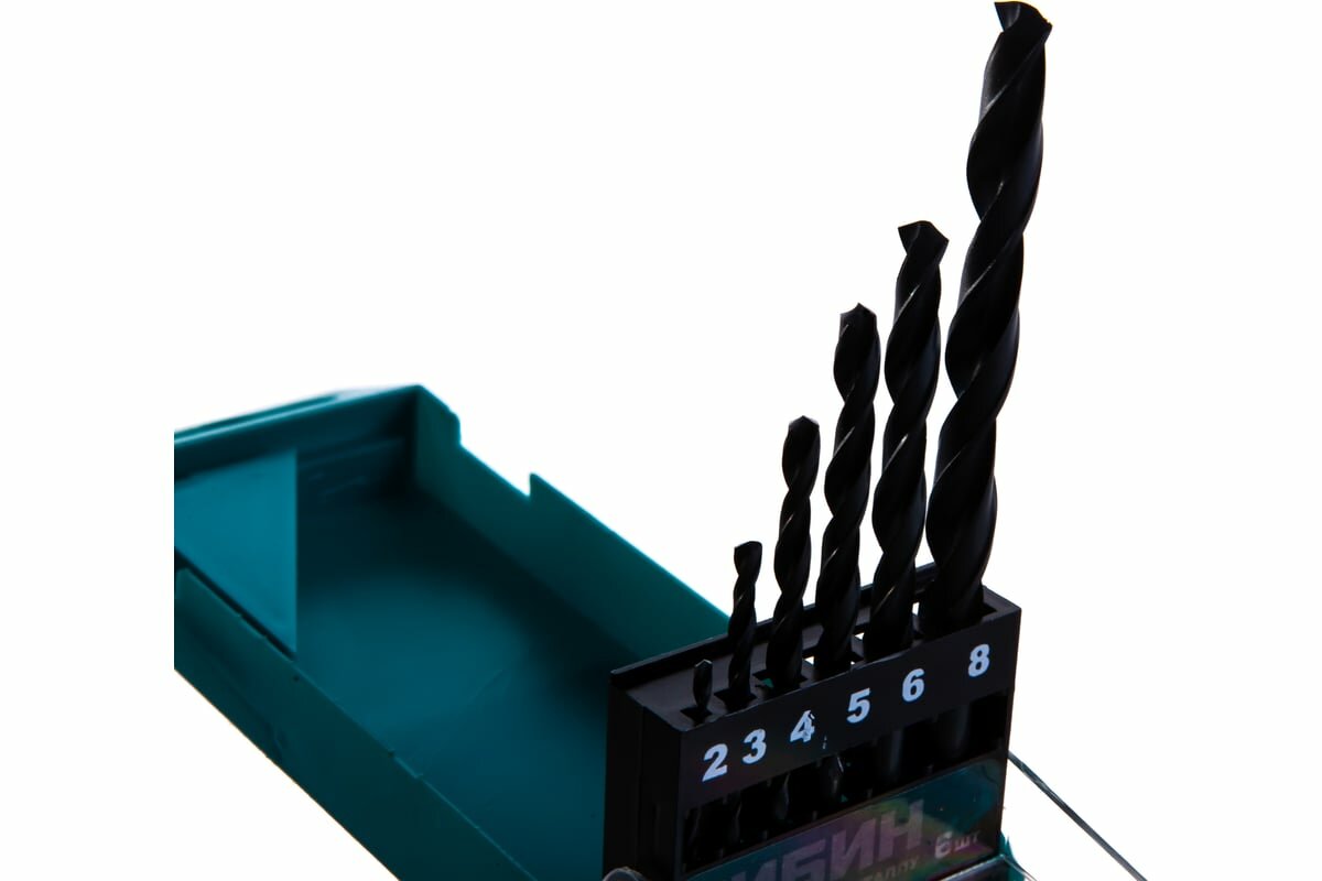 СИБИН 6шт(2-8мм), Набор сверл по металлу, быстрорежущая сталь, класс В