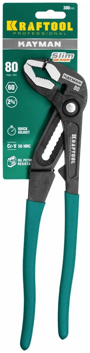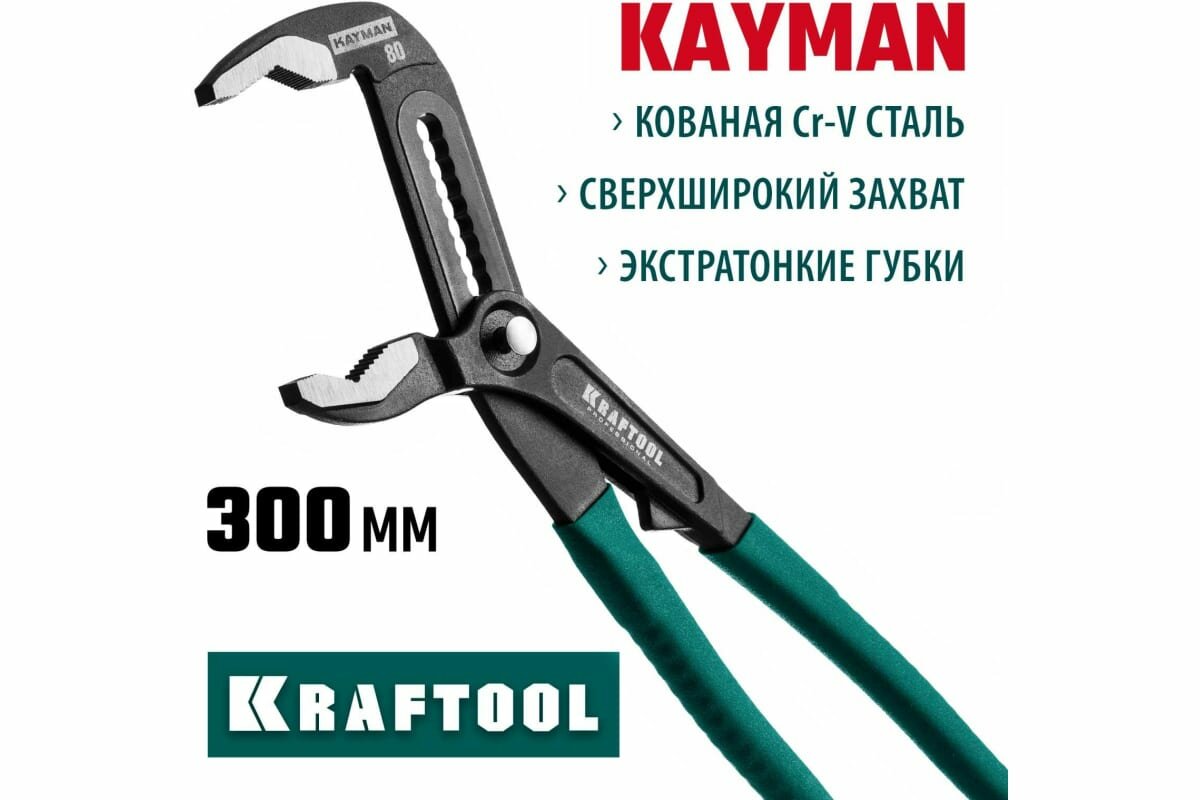 Клещи переставные "KAYMAN", быстрая регулировка, Cr-V, max захват до 80 мм, 300мм, KRAFTOOL