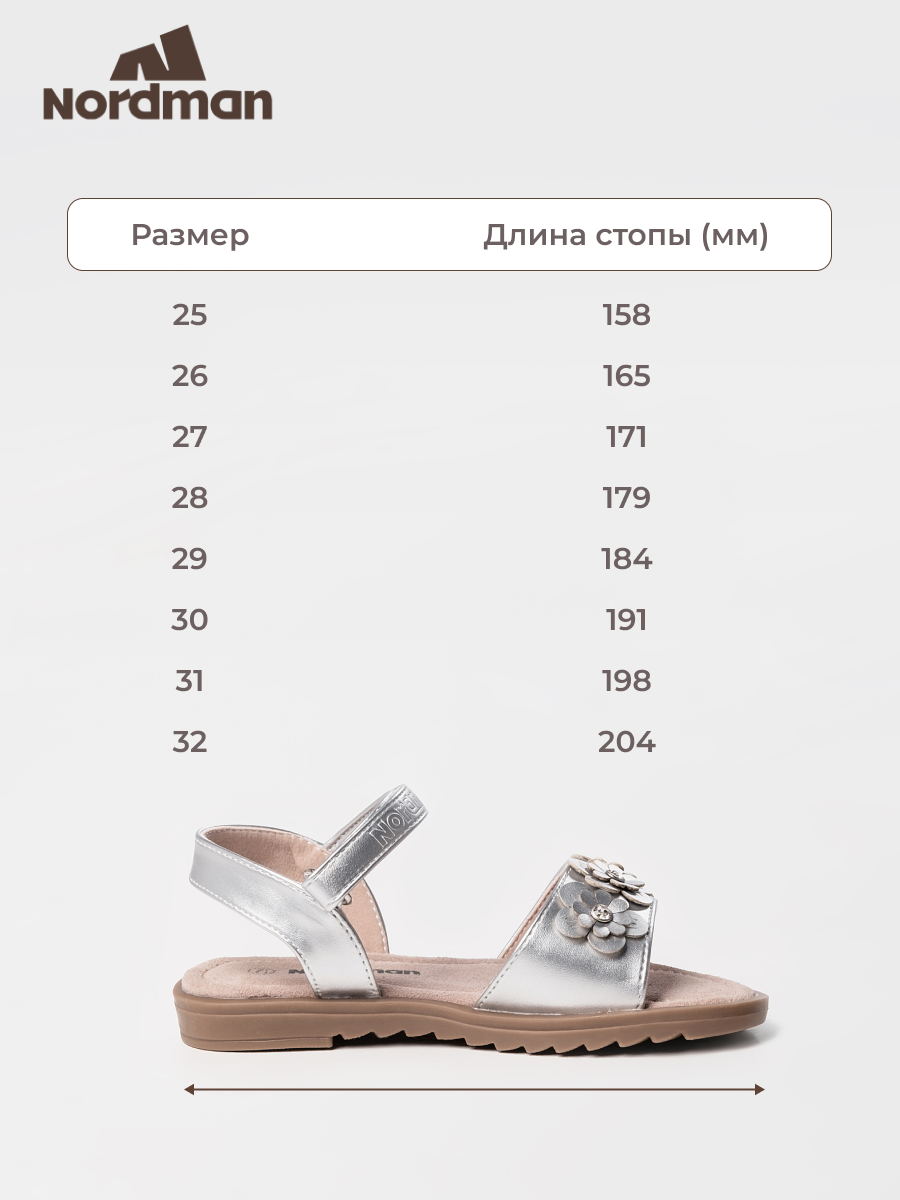 СохранитьБосоножки Nordman Весна-лето 2025, размер 26, серебряный интересное: