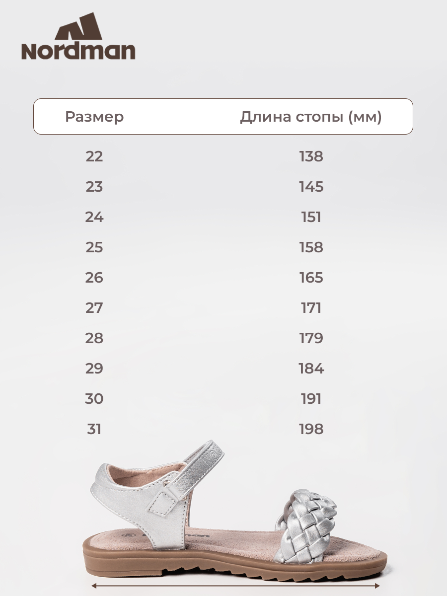 СохранитьБосоножки Nordman Весна-лето 2025, размер 31, серебряный интересное: