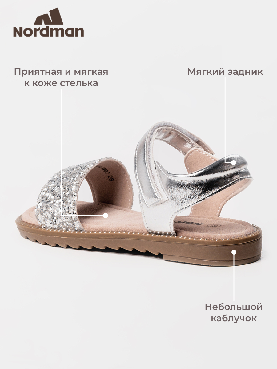 Босоножки Nordman Весна-лето 2025, размер 26, серебристый
