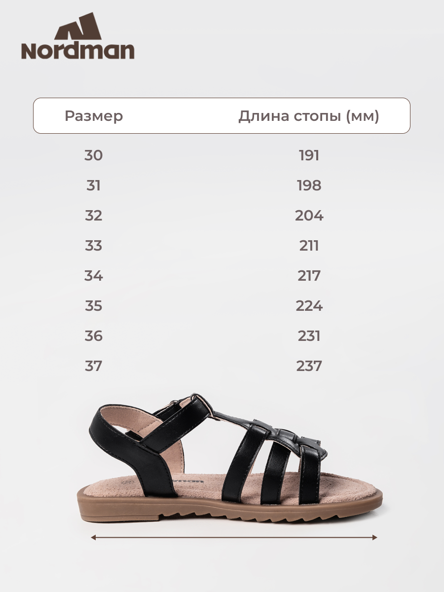 Босоножки Nordman Весна-лето 2025, размер 31, черные