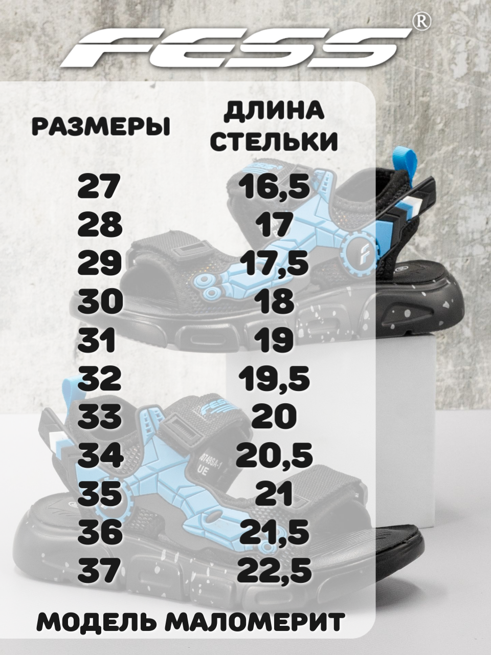 Сандалии FESS, размер 25.5, черно-синий интересное: