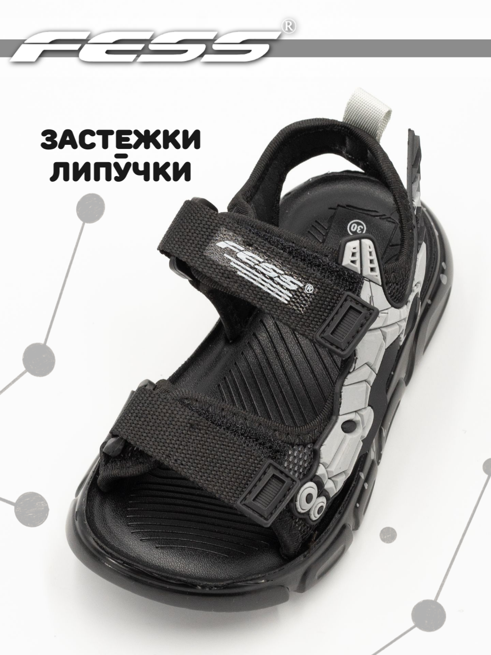 Сандалии FESS, размер 25.5, черно-серый интересное: