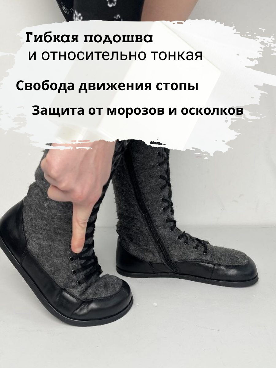 Валенки Босоногие валенки для девочки с защитой от реагентов, размер 25, черный, серый интересное: