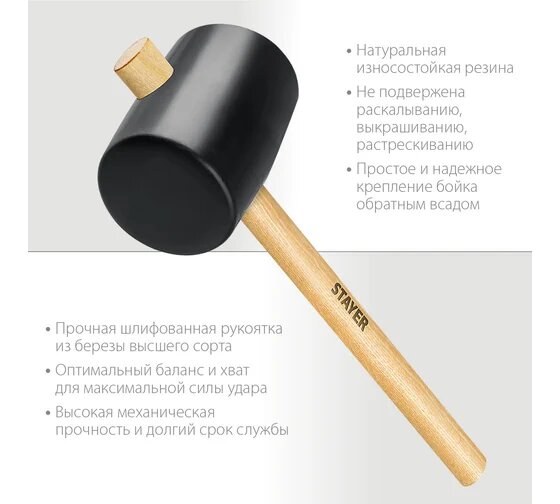 Киянка STAYER 225 г деревянная ручка черная резиновая 20505-40