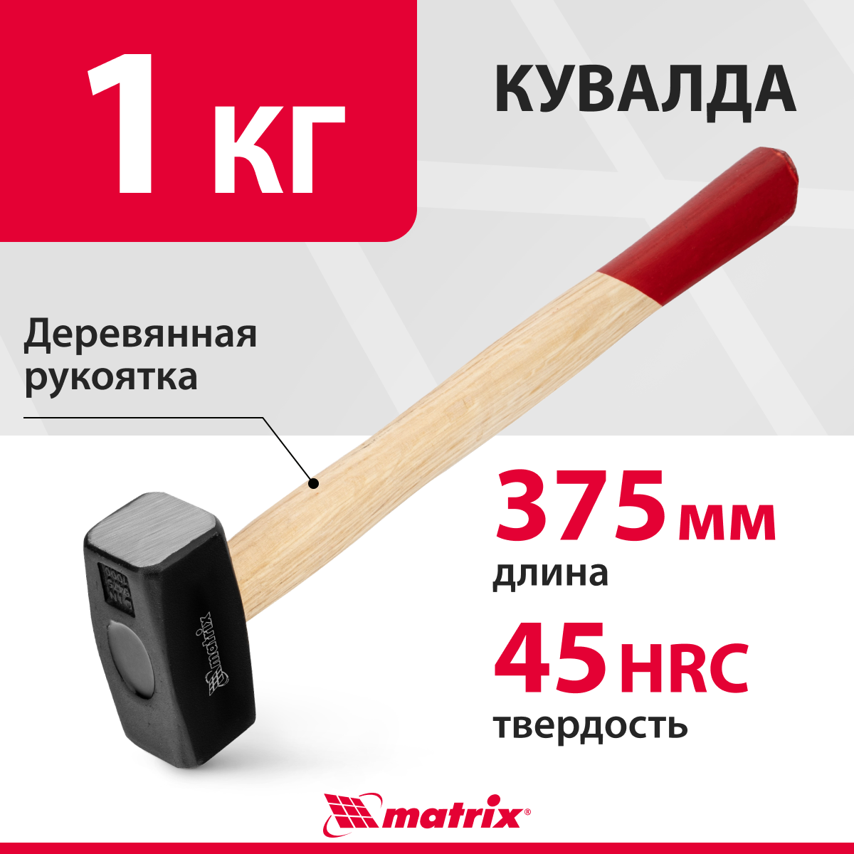 Кувалда Matrix 1000 г, деревянная рукоятка, из высококачественной среднеуглеродистой стали 45, 10902