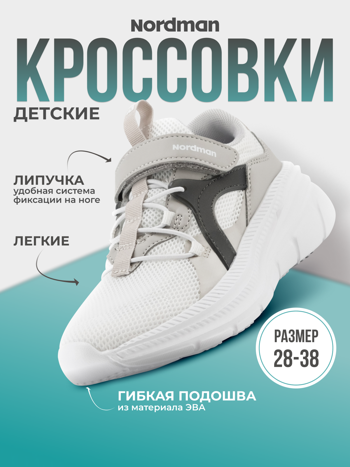 Кроссовки Nordman Весна-лето 2025, размер 32, белый
