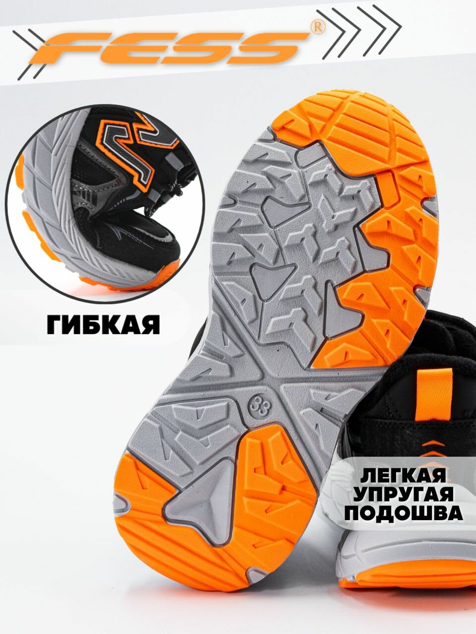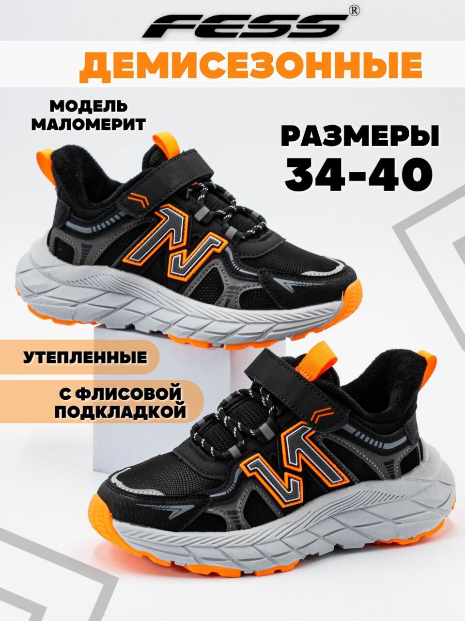Кроссовки FESS Кроссовки FESS для мальчика весенние утепленные, размер 41, серый/оранжевый интересное: